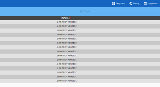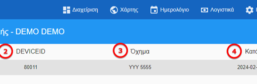 Πρώτη συντόμευση που είναι αρκετά χρήσιμη, είναι η προσαρμογή του χάρτη ώστε να περιλαμβάνει όλα τα οχήματά μας. Αυτό επιτυγχάνεται πατώντας το κουμπί που φαίνεται στην παραπάνω εικόνα. Ο χάρτης διευρύνεται ή συγκλίνει τόσο ώστε να συμπεριλάβει όλα τα οχήματα που έχουμε στον λογαριασμό μας. Στην περίπτωσή μας έχουμε δύο οχήματα τα οποία μπορούμε να δούμε με κόκκινο χρώμα επάνω δεξιά, και με μπλε χρώμα κάτω αριστερά. Εάν τα οχήματά μας έχουν μεγάλη απόσταση μεταξύ τους, ο χάρτης θα διευρυνθεί αρκετά, κάτι το οποίο θα μας δυσκολέψει στο να εντοπίσουμε κάθε όχημα. Σε αυτή την περίπτωση, χρησιμοποιούμε την παρακάτω λειτουργία της εστίασης σε συγκεκριμένο όχημα του στόλου μας.