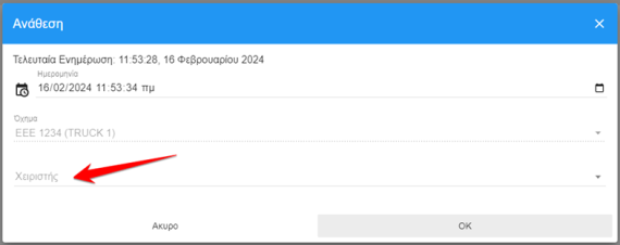 Ανάθεση συσκευής και χειριστή οχήματος Ανάθεση χειριστή και συσκευής τηλεματικής σε όχημα του στόλου μας