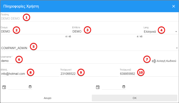 Επεξεργασία των πληροφοριών ενός υπάρχων χρήστη και αλλαγή κωδικού λογαριασμού