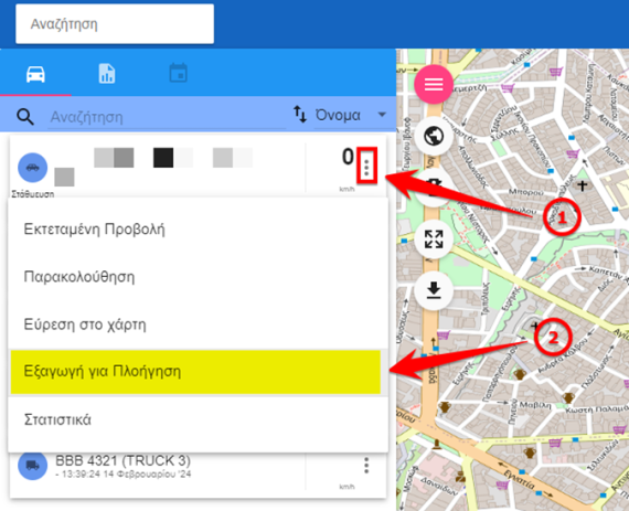 Εξαγωγή θέσης για πλοήγηση προς κάποιο από τα οχήματα του λογαριασμού