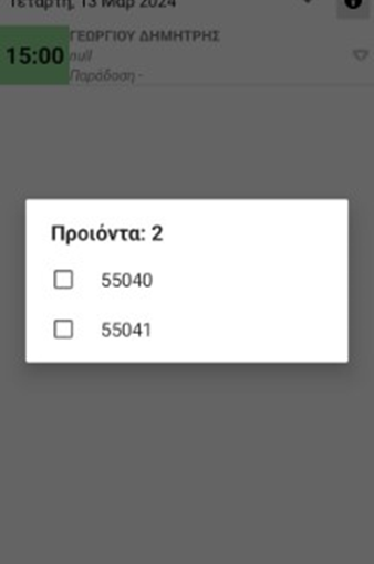 Όταν μας έχει ανατεθεί μια εργασία μπορούμε να δούμε πληροφορίες σχετικά με αυτήν πατώντας το βελάκι δεξιά και επιλέγοντας «Σχετικά Προϊόντα/Υπηρεσίες».